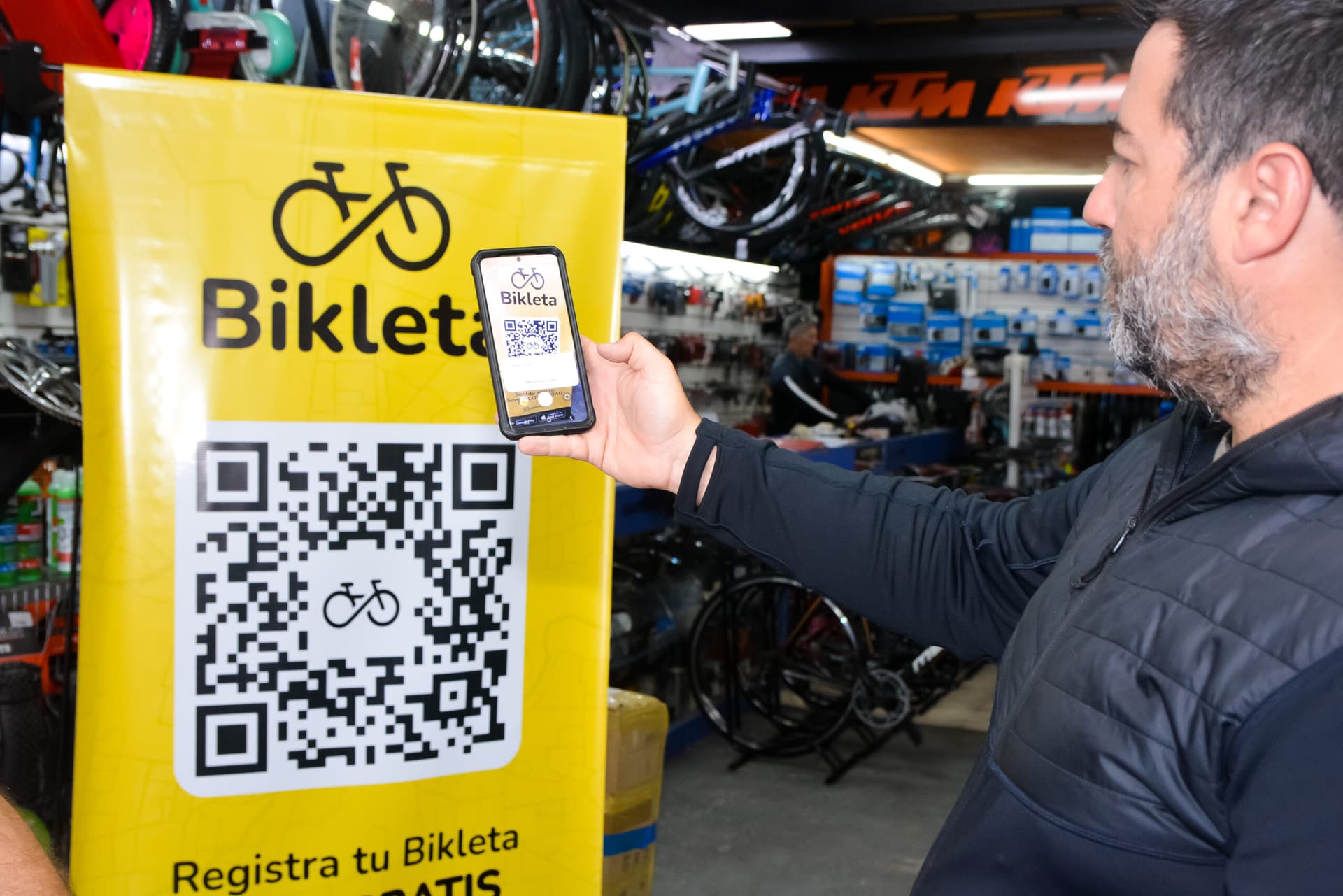 La identificación de cada bicicleta también puede hacerse escaneando un código QR que puede pegarse en el cuadro de la bici y queda asociado a la app: “Estamos haciendo convenios con distintas bicicleterías y tiendas para que cuando uno compre una bici pueda pedir el código QR, eso se pega en la bici y asocia los datos ingresados en la app con los detalles de la bici. Así hacemos más fácil la identificación de cada bicicleta. En el código QR esta asociada la información que el usuario crea necesaria, como teléfono de contacto en caso de emergencia, email, grupo sanguíneo, domicilio y muchísimas otras”, señaló Diego Ghione, socio fundador de Bikleta.