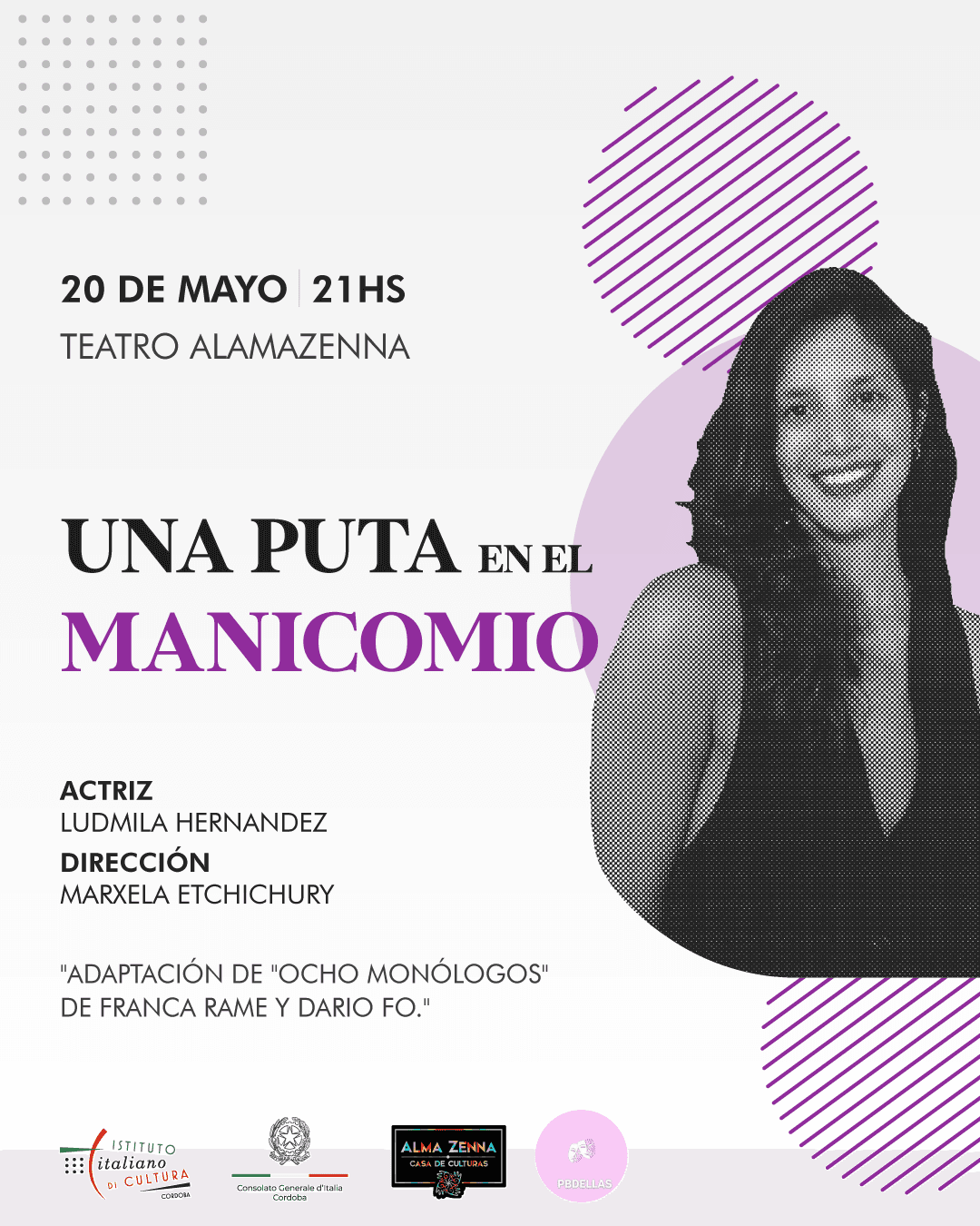 En este marco, Ludmila Hernández, bajo la dirección de Marxela Etchichury, será quien interprete Una Puta en el Manicomio, el próximo 20 de mayo. La obra relata la vida de una mujer que debe sobrevivir en un centro psiquiátrico y que ha sido víctima de abusos y violencia de género. Ironías y contradicciones son el condimento que que sirve de puntapié para abordar la corrupción y la violencia.