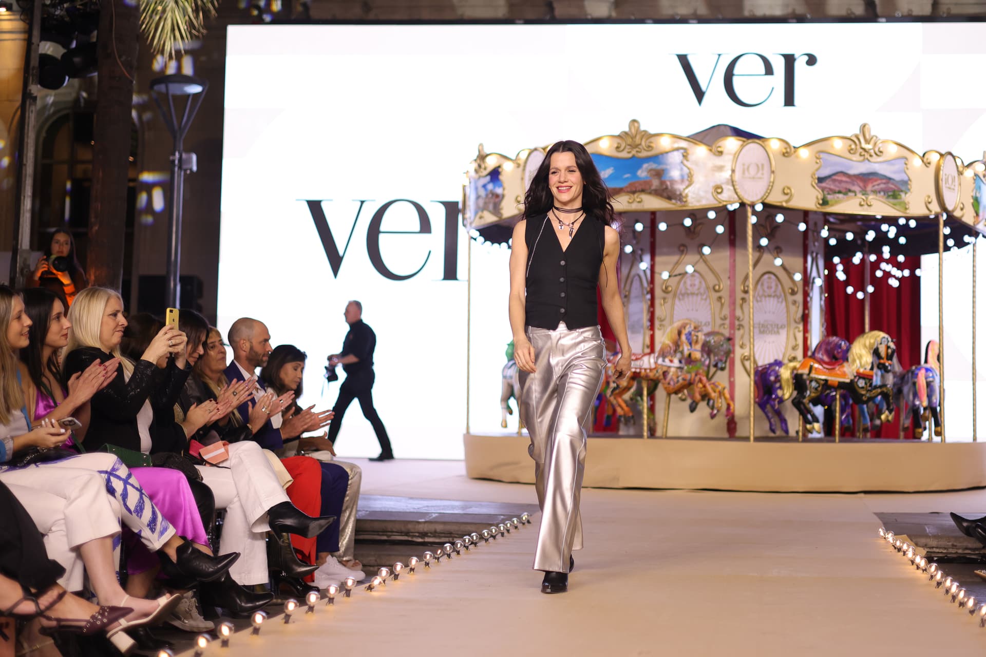 Agregando más atractivos a la velada, el evento fue engalanado con relevantes figuras como la actriz Violeta Urtizberea, embajadora de la marca VER, y Josefina y Clara Sarkany, hijas del diseñador Ricky Sarkany, quienes cerraron la pasarela de Sarkany.